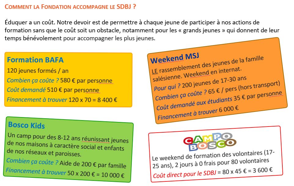 La Fondation Salésienne Pastré soutient le SDBJ en contribuant au financement des activités, afin qu’elles restent accessibles à tous.